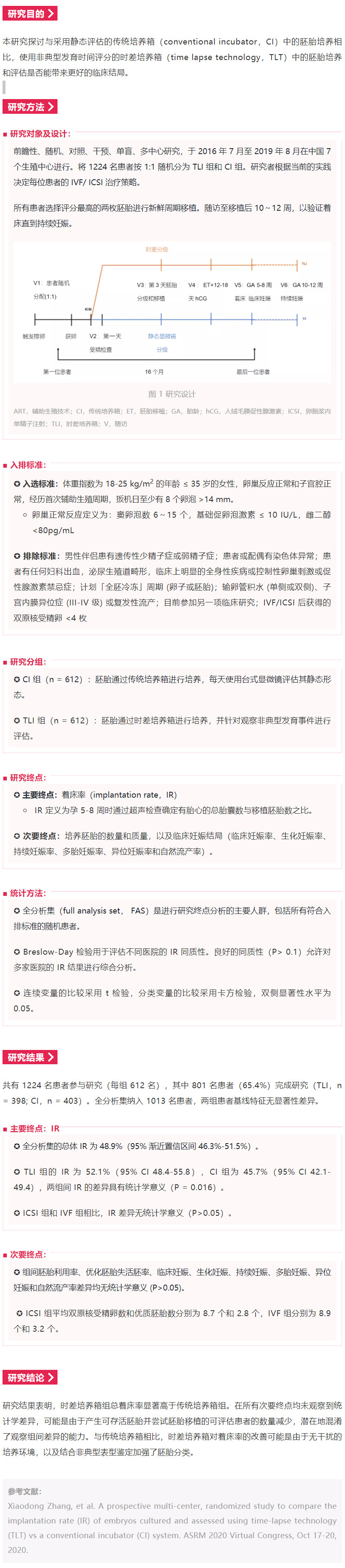 2020 年:前瞻性、多中心随机研究|比较采用时差技术和传统培养箱系统培养和评估的胚胎的着床率